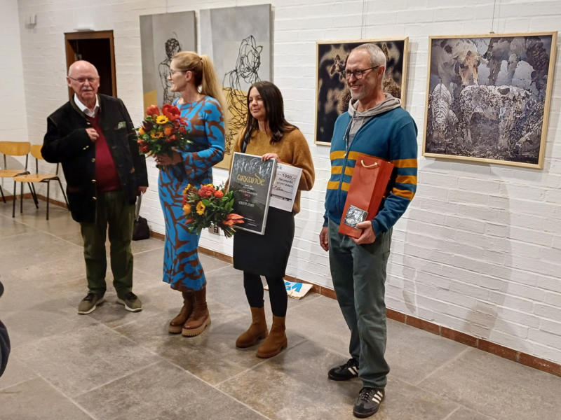 Fotos von der Ausstellungseröffnung mit der Verleihung des Atelierförderpreises 2024 an Kerstin Sturm