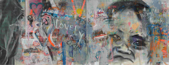 große Collage und laden die Passantinnen und Passanten