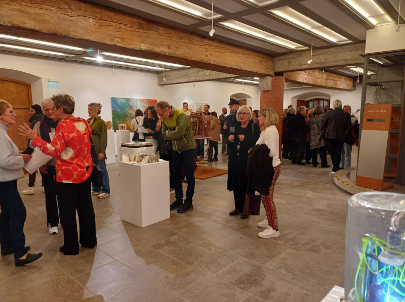 Begrüßung: Oskar ReithmeierEinführung: Uwe MitschingDie Mitgliederausstellung zeigt jedes Jahr eine große Vielfalt des künstlerischen Schaffens unserer Mitglieder und bietet die Möglichkeit, die lokale Kunstszene kennenzulernen. Die aktuelle Ausstellung zeigt höchst unterschiedliche künstlerische Ansätze und vermittelt einen beeindruckenden Überblick über die große Vielfalt ästhetischer Praktiken. Gezeigt werden Werke aus den Bereichen Bildhauerei,Fotografie, Grafik, Keramik und Malerei. Die Werke sind käuflich zu erwerben.Neu in diesem Jahr sind die am Sonntag stattfindenden Führungen - jeder ist hier herzlich eingeladen, ausstellende Künstler und ihre Werke näher kennenzulernen.Die durch eine externe Jury bestimmte Atelierförderpreisträgerin wurde bei der Vernissage bekannt gegeben und vorgestellt. Die Das oben abgebildete Werk stammt von der Atelierpreisträgerin 2023 Anna Meier.